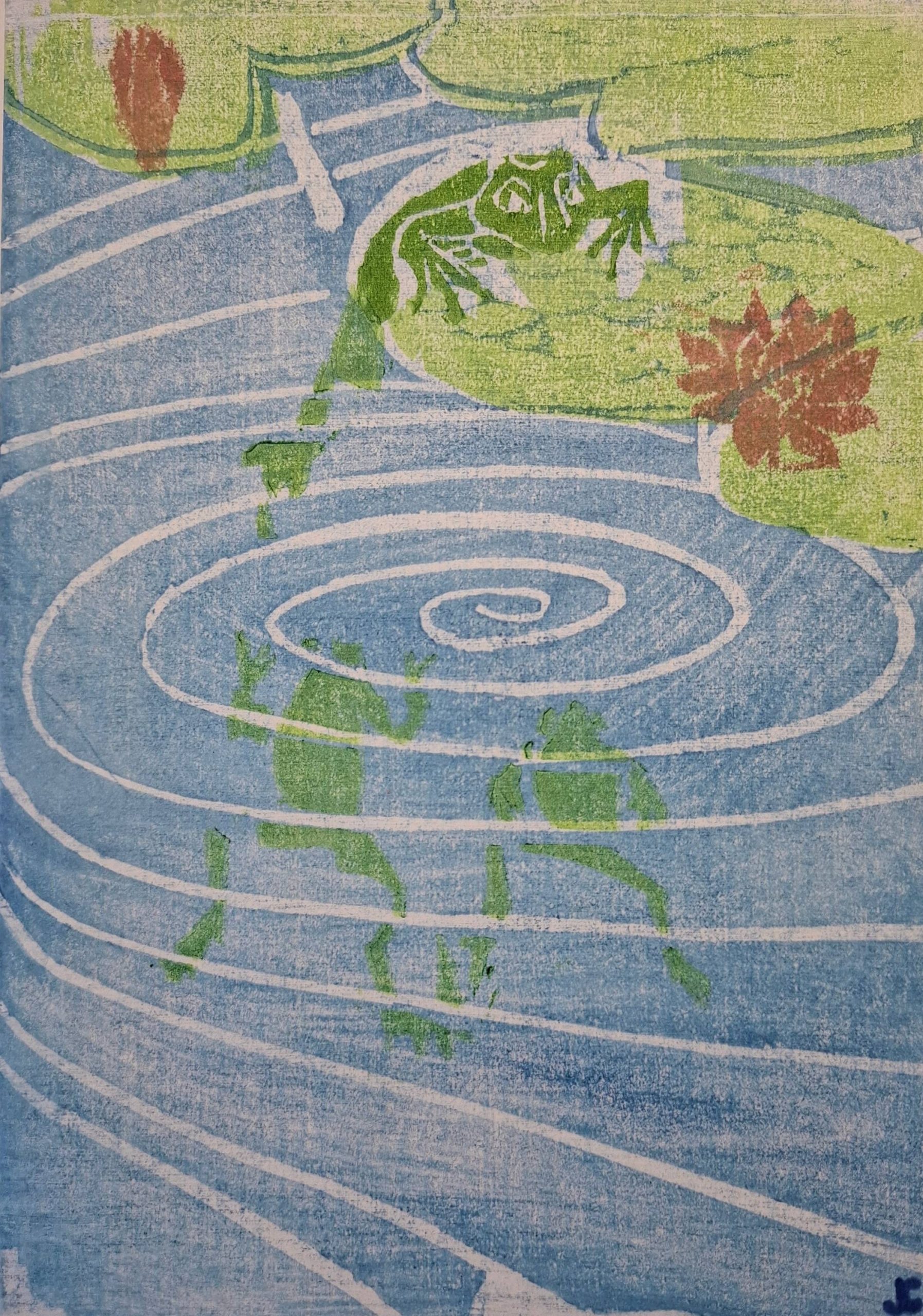 Estampe n°1 technique japonaise “moku hanga” tirée en 3 exemplaires sur papier Japon. aquarelles