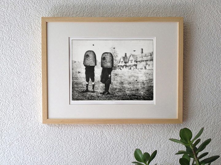 This photo polymer, or solar plate, etching is hand pulled in a limited edition of 25 copies on 300 grams Hahnemühle etching paper.