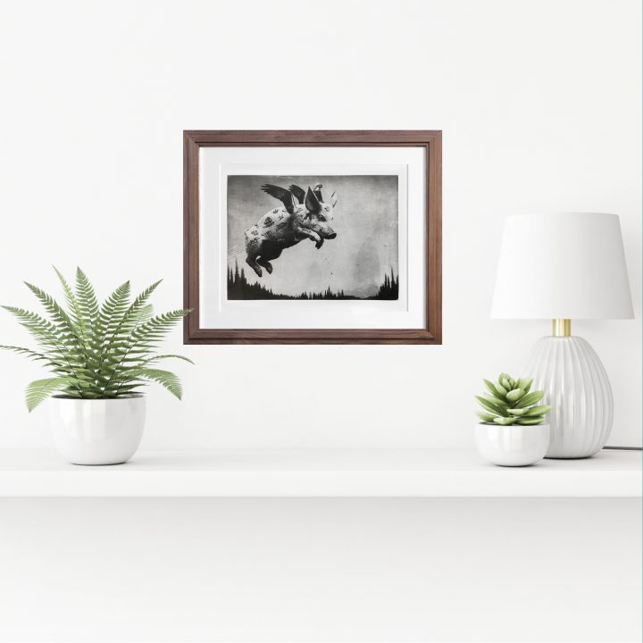 This photopolymer, or solar plate, etching is hand pulled in a limited edition of only 25 copies on 300 grams Hahnemühle etching paper.