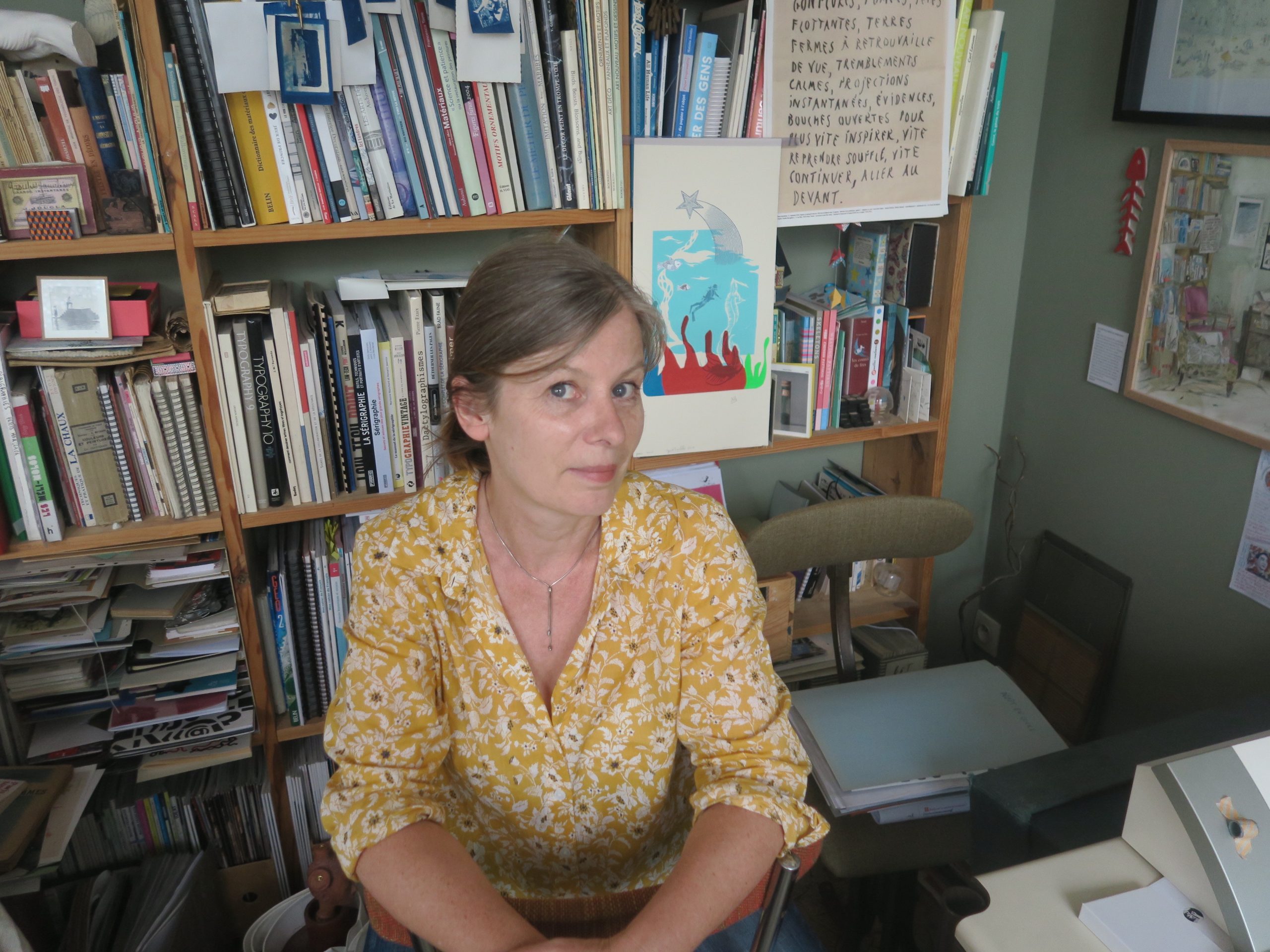 Je créé des motifs, dessins ou montage de photos que j'imprime ensuite manuellement en sérigraphie. Les tirages sont uniques ou en micro-série